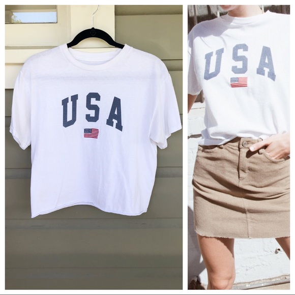 Brandy Melville Tops Brandy Melville Cropped Usa Tee Poshmark